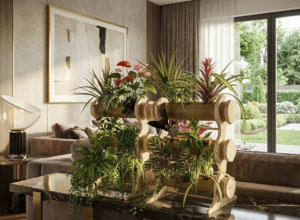 Idéal pour structurer un grand loft, délimiter un espace de travail ou créer un jardin d’hiver intérieur, PARALLELE fait office de filtre acoustique et visuel. La répétition des lignes horizontales dessine un horizon intérieur paysager, où la luxuriance des plantes (Chlorophytum, fougères, lierres) apporte une dynamique organique constante.